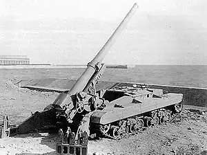 The Semovente da 149/40 was a completely unprotected weapon as the long gun barrel was placed on an open mounting carried on the turretless tank chassis. The gun crew stood in the open to serve the gun that had its trunnions mounted right to the rear to absorb some of the recoil forces produced on firing. It was late 1942 before the first prototype was ready for prolonged firing trials, but even before these were over unsuccessful attempts were being made to start production.[2] Before the lines could start rolling the Italians surrendered to the Allies and the Germans took over what was left of the Italian economy. Thus the Semovente da 149/40 prototype remained the sole example of what seemed to be a promising design. The Cannone da 149/40 modello 35 could fire a 46 kg (101 lb) shell to a range of 23,700 metres (25,900 yards), at which distance the lack of protection for the gun crew would have been of relatively little importance.[1]