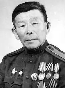 Semyon Danilovich Nomokonov (Russian: Семён Данилович Номоконов; 12 August 1900 – 15 July 1973) was a Soviet sniper during World War II credited with 367 kills.[1][lower-alpha 1] An ethnic Hamnigan Evenk,[lower-alpha 2] Nomokonov was among the indigenous peoples of Russia who fought in the war. He received the nickname "Taiga Shaman" from enemies.[1][2]