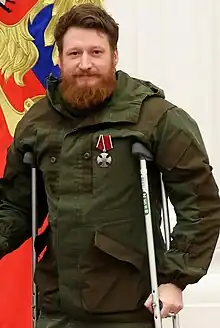 Semyon Vladimirovich Pegov (Russian: Семён Владимирович Пегов; born 9 September 1985) is a Russian military blogger and propagandist.[5][6][7][8] He works for the military project WarGonzo and a Telegram channel which has been associated with the Russian special services.[9] He has covered the Russo-Ukrainian War, Nagorno-Karabakh conflict, and Russo-Georgian War, primarily from a pro-Russian point of view.