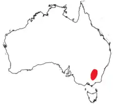 The species occurs in dry schlerophyll forests and open woodlands, on the sheltered south and east facing slopes of rocky outcrops between Wyalong, NSW to Chiltern, Victoria.[3][4] The species is capable of regenerating in both the absence and presence of fire, however fire facilitates germination and some resprouting occurs after fire.[3]