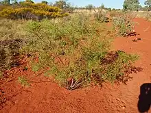 Senna glutinosa grows in arid shrubland in all mainland states of Australia and the Northern Territory, but not in Victoria. Subspecies chatelainiana in the central west of Western Australia,[9][17] and subsp. glutinosa from the north-west of Western Australia to the Northern Territory and north-western South Australia.[11][18] Subspecies × luerssenii occurs from the central coast of Western Australia to near the Northern Territory border,[13][19] and subsp. pruinosa is found from north-western Western Australia to far northern South Australia, and far western Queensland and New South Wales.[15][16][20]