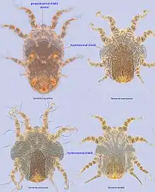 - ↑ Klimov, P.B., B. OConnor, R. Ochoa, G.R. Bauchan, A.J. Redford, J. Scher. (2016). "Sennertia". Bee Mite ID: Bee-Associated Mite Genera of the World. Fort Collins, CO: USDA APHIS Identification Technology Program (ITP). Retrieved 2018-03-03.