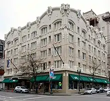 ![]() The hotel's entrance in 2015, with recently restored "Elks Temple" signage above | |