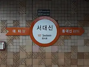 Seodaesin Station is a station of Busan Metro Line 1 in Seodaesin-dong, Seo District, Busan, South Korea.