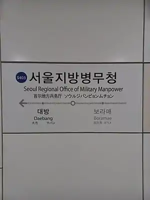 Seoul Regional Office of Military Manpower Station is a station on the Sillim Line. It is located in Daebang-dong, Dongjak-gu, Seoul.