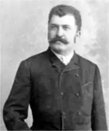 From 1888 to 1894, Albini was director and editor of Tribuna; the position had become vacant following Slavici's sentencing to a year's imprisonment.[9] In this position, he was deeply involved in cultural affairs,[10] and contributed two rural-themed short stories to the newspaper, "O seară la Brustureni" and "Un sărac avut". Additionally, "Un nou filoromân" is a polemic directed against a book by an obscure Hungarian writer, Sándor Lengyel, that Albini considered defamatory toward the peasants of the Apuseni Mountains.[4] However, he increasingly became enmeshed in political and national matters as well. This side of his activity saw Albini charged in several press trials, leading to his incarceration in Cluj for a month in 1889 and for six months at Vác in 1890–1891. In 1893, just after becoming engaged, he spent three months in the prison at Szeged.[10] As a signer of the Transylvanian Memorandum, he was put on trial. His health weakened following the winter prison stay at Szeged, he could not attend the May 1894 sentencing, and instead waited until October to learn of the two and a half years' sentence. The state of his health, combined with the fact that he was recently married and had a newborn son, and was still a young man, led Albini to flee to Romania and avoid punishment. Another contributing factor was likely the letter of Dimitrie Sturdza, head of Romania's National Liberal Party, urging those sentenced not to accept the verdict and instead continue their struggle out of the Old Kingdom.[11] His "desertion" was strongly condemned by fellow signatories who served their sentences, including by Tribuna colleagues,[11][10] but Albini justified his action through articles published there.[10]
