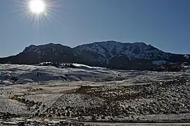 Sepulcher Mountain, elevation 9,642 feet (2,939 m), is a moderate mountain peak in northwest Yellowstone National Park halfway between the summit of Electric Peak and Mammoth Hot Springs. The peak was named Sepulcher by U.S. Army Captain John W. Barlow in 1871 because of its resemblance to a crypt when viewed from Gardiner, Montana.[2]