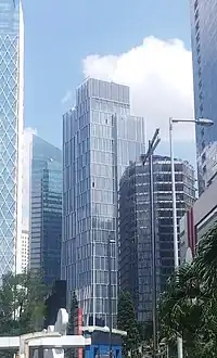 Sequis Tower is a 210 metres (690 ft) tall skyscraper at Sudirman Central Business District, South Jakarta, Indonesia. This is a LEED Platinum building.[2] The design of the tower is inspired from the Banyan tree with a bundle of four towers, with gardens on the roof featuring typical local plants.[3] To reduce the amount of energy, Sequis Tower has adopted the design of shading fins that can compensate for solar radiation on the building facade.[4] Sequis Tower’s open plaza has pedestrian access to Pacific Place, The Alila Hotel, Jakarta Stock Exchange, Bapindo Towers, Sequis Center, The Energy Tower, Graha CIMB Niaga and MRT Jakarta’s Istora station.[5] The tower is topped off in March, 2017.