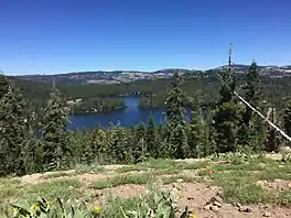 Serene Lakes (also called Ice Lakes) are a pair of freshwater lakes, located in the Sierra Nevada Mountains in Northern California, about 15 mi (24 km) northwest of Lake Tahoe. Serene Lakes consists of two connected bodies of water, Lake Serena and Lake Dulzura, which together span about 77 acres (31 ha). Located in the unincorporated community of Soda Springs in Placer County, CA, the lakes are adjacent to Interstate 80 to the north and Donner Pass to the east.[1] The Geographic Names Information System ID for Serene Lakes is 254806.