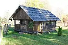 Serga tsässon is situated in the middle of the Serga village. The vicinity of the tsässon is used as a village square and has a swing, a flag post and some benches. Serga tsässon is dedicated to Saint Anastasia and the feast for this tsässon is on the 11 November (Nahtsipäev) (29 October according to Julian calendar). Tsässon is still used today. According to the data based on dendrochronological research, the probable time of building is 1784 (Läänelaid et al 2005). The building is not state-protected. It is in good condition. The tsässon got hit by a shrapnel shell during a battle in the War of Independence that shifted it off the stone foundation. Splinters and the damage they did can be seen today in the east and north wall of the building. During Nahtsipäev (11 November) in 2007, father Rafael re-inaugurated Serga tsässon after a thorough renovation. Local builders Ain Raal and Väino Järv replaced the lower beams, the floors, the ceilings and installed a new aspen shingle roof during the renovation. Serga tsässon was near to a new Taeluva church; therefore, the communication between the villagers and popes was frequent. Tsässon was actively used during Soviet times (Sillaots 2001).[1]