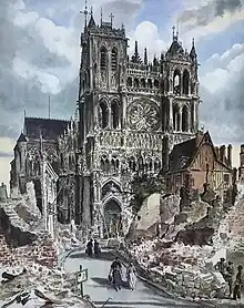 He produced reportage drawings, such as these series of paintings representing the Hôtel Drouot[6] or these watercolors presenting the Cathedrals of France, of which the Musée Carnavalet acquired several pieces in 1988. He designs stage costumes and theater sets. His Haute couture representations (Schiaparelli, Molyneux, Rochas, Patou) made the cover of fashion magazines. Van Cleef & Arpels commissioned a portrait from him for the New York Exhibition in 1939,[7] depicting a model wearing jewelry from the "Passe-Partout" collection.[8]