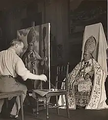 - Pope Pius XI, at Castel Gandolfo, 1937.[38][39] The portrait will appear on the front cover of L'Illustration in a special album on the death of the pope, in February 1939.[40] The pope, though sick and tired, posed for the preparatory portrait.[41]