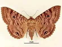 Some of the species, such as Speiredonia spectans, S. cthulhui, S. hogenesi, S. martabanica, S. sandokana, S. alix. S. itynx, S. levis and S. celebensis have a pattern on the wings that while the moth is at rest looks like the 3-dimensional face of a lurking animal with eyes and nostrils. This pattern is more clearly discernible in females[3] and may cause an attacking predator to hesitate or perhaps withdraw.[4]