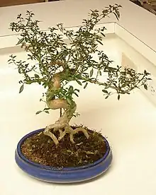 Buchozia japonica is one of the most common bonsai sold in America and Europe. It is not difficult to maintain as bonsai, but is very fussy. Many beginner bonsai enthusiasts will destroy a plant in their uninformed attempts to care for it. The trees respond adversely by dropping leaves if over-watered, under-watered, if it's too cold, too hot, or even if just moved to a new location. The plant usually grows back to health when put back to better conditions.[3][4]