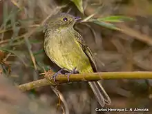 The Serra do Mar tyrant-manakin (Neopelma chrysolophum), or Serra do Mar neopelma or the Serra tyrant-manakin, is a species of bird in the Pipridae, or manakin family. It is endemic to humid mountain forest and woodland in south-eastern Brazil. It was formerly considered a subspecies of Wied's tyrant-manakin.
