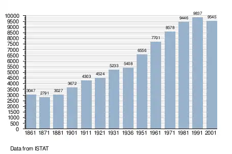 - ↑ "Popolazione Residente al 1° Gennaio 2018". Italian National Institute of Statistics. Retrieved 16 March 2019.