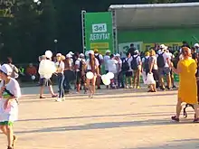 The party held its first congress on 9 June 2019.[25] It took place in Kyiv's Hryshko National Botanical Garden and was attended by President Zelenskyy and party leader Razumkov, among others. During the congress the first names of the party's majority constituency candidates and the 97 candidates of the nationwide closed party list were made public.[26] Well-known names in the nationwide party list were: Olympic athletes Olha Saladukha, Vadym Gutzeit and Zhan Beleniuk and long-term CEO of 1+1 Media Group Oleksandr Tkachenko.[26] Three days later Gutzeit and two other candidates had withdrawn themselves from the election, whilst a fourth was excluded from the list "after additional checks".[27][28] During the post-primaries, press and activists highlighted the most controversial representatives of the party, such as Oleksandr Dubinsky and Max Buzhanskiy. Neither of them was withdrawn from the final list of the party after the registration deadlines.[29][nb 3] The party excluded seven candidates from its list on 7 July 2019; five candidates were removed “as a result of information submitted [to the party] via the website and chat bot”, whilst two others requested to be removed from the list, including the No. 31 candidate.[31] On 19 July 2019, the leader of the Movement of New Forces party Mikheil Saakashvili called on his supporters to vote for the Servant of the People party at the parliamentary election.[32]
