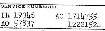 - ↑ National Personnel Records Center, Military Operations Branch, "Service number index and registry of retired, deceased, and discharged military personnel" (2007)