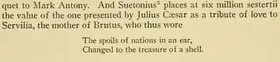 - ↑ Streeter, Edwin William (1886). "The Servilia Pearl". Pearls and Pearling Life. University of Michigan: G. Bell & Sons. p. 280. ISBN 9781298034748. Retrieved 2019-10-13 – via Archive.org. Alt URL