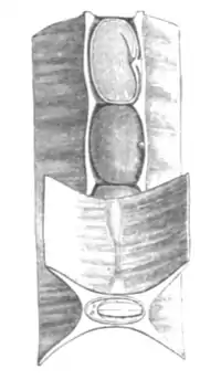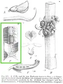 ![]() Illustration of placentation of seeds inside the pods of S. punicea |