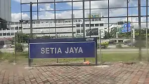 The station was known as Sungai Way Station in the 1980s.[1] while the new name “Setia Jaya” originate from Seri Setia (Sungai Way) new village, and “Jaya” means victory in Malay language and also from Petaling Jaya.