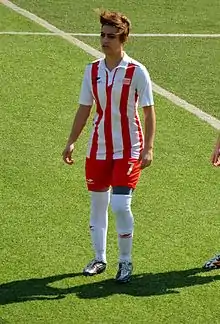 During the UEFA Support International Tournament in 2008, she netted each one goal in the games against Croatia and Latvia.[4][5][6]