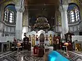 The building rises to a height of 32.5 meters. The marble-clad interior was decorated by a team of Swiss and Italian artists. The names of the heroes of the 1850s siege are inscribed on the walls. The tombs of the admirals were destroyed by the Soviets in 1931. The church sustained further damage in the Second World War.[1]