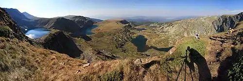 The Seven Rila Lakes (Bulgarian: Седемте рилски езера, romanized: Sedemte rilski ezera, pronounced [sɛdɛmˈtɛ ˈriɫski ɛzɛˈra]) are a group of glacial lakes, situated in the northwestern Rila Mountain in Bulgaria. They are the most visited group of lakes in Bulgaria. The lakes are situated between 2,100 and 2,500 metres elevation above sea level.