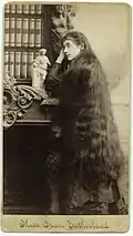 The Seven Sutherland Sisters was a singing group which included the seven daughters of Fletcher and Mary Sutherland of Lockport, New York.[1] They appeared with Barnum and Bailey's from the late 1880s to the early 1900s.[2] Their distinguishing feature was their long hair; publicity about the length and texture of their hair enabled the Sutherlands to create a successful line of patent medicine hair and scalp care products.[3]