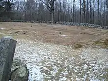 Today, there are no full standing headstones, due to vandalism that took place in the 1970s and again in 2010, and also as a result of weathering. The only standing headstone was that of Elisabeth Palmiter, and that stone remained in the cemetery until 2010. Sometime between 7:30am on July 20 and 11am on July 21, some individuals stole the 200-pound headstone of Elisabeth Palmiter.[2] This was a roughly 200 pound grave marker that was re-dedicated to the site in the 1970s, following the removal of all vandalized pieces of the original stones. The cemetery is now private property (owned by the New Britain Public Works) and the Burlington police and local residents usually patrol the area at night to guard against further vandalism. Visiting the site during the day for the purpose of historical research is permitted.