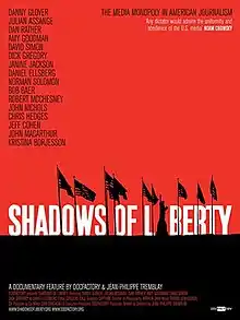 Shadows of Liberty is a 2012 British documentary film directed by Canadian filmmaker Jean-Philippe Tremblay. The documentary examines the impact of corporate media and concentration of media ownership on journalism and the news. It is based on the book The Media Monopoly by Ben Bagdikian. The film’s title is borrowed from a Thomas Paine quote: "When men yield up the privilege of thinking, the last shadow of liberty quits the horizon."