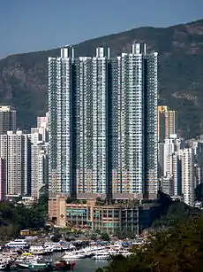 The Sham Wan Towers (Chinese: 深灣軒) is a residential high-rise development located in the Ap Lei Chau area of Hong Kong. The complex consists of three towers,[1] each of which rank among the tallest buildings in the city. The towers, numbered 1, 2, and 3, each rise 180 metres (591 ft), but differ in floor counts; Towers 1 and 2 contain 52 floors, while Tower 3 has 53.[3][4][5] The entire complex was completed in 2003.[2] The structures, designed by architectural firm AGC Design and developed in a collaboration between Cheung Kong Infrastructure Holdings and Sun Hung Kai Properties, are composed entirely of residential units.[2]