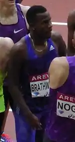 Shane Rashad Brathwaite (born 8 February 1990 in Bridgetown) is a hurdler from Barbados who competed in the 110 metres hurdles at the 2012 Summer Olympics but did not finish the race in the qualifying heats.[2] His gold medal in the octathlon at the 2007 World Youth Championships in Athletics made him the first person from Barbados to win a gold medal at a global athletics championship.[3]