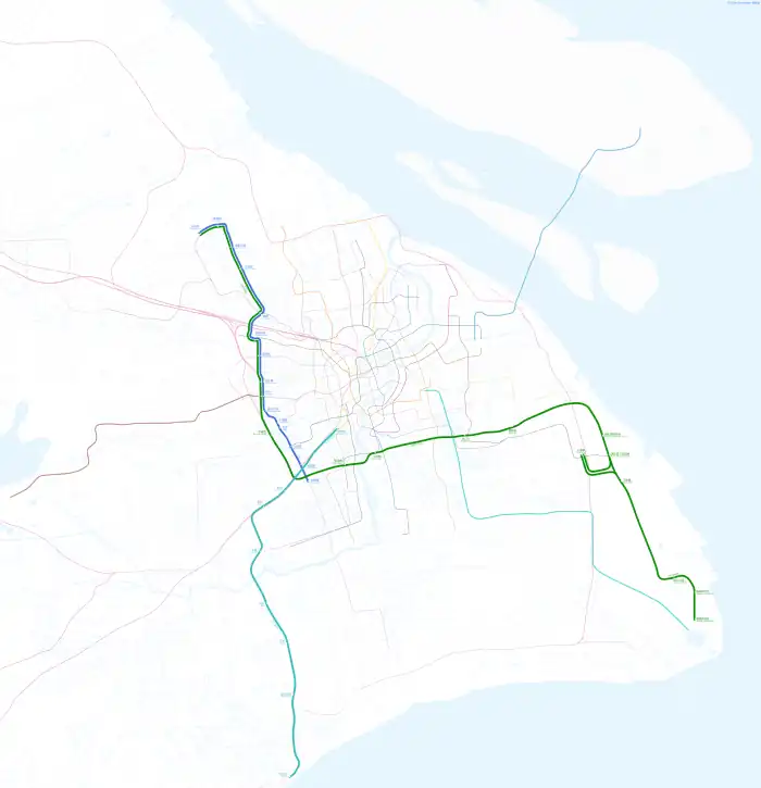 | Lianggang Express (Nanhui Branch Line) 两港快线(南汇支线) | Lingang Open Area | Shanghai East railway station; Pudong International Airport T3 Terminal |
