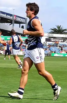 In 2011 he only played five games, in an injury plagued year missing most of the season due to knee and calf injuries.[1] He was selected as an emergency for the 2011 AFL Grand Final, but despite there being some injury concerns over Steve Johnson,[2] he was not called up to the final team.