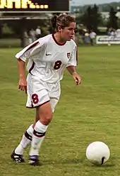 She was a "super-sub" on the US WNT's 1999 Women's World Cup team and the 2000 Olympic team. She earned a spot on the roster for the 2003 Women's World Cup team after making a miraculously quick recovery from an ACL tear suffered just four months before the tournament began.