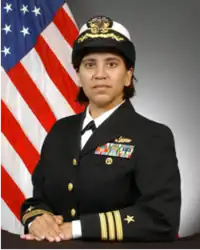 ![]() Official US Navy portrait of Commander Shanti Sethi during her period in command of the USS Decatur between 2010 and 2012 | |