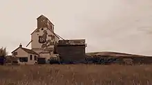 The community was the site of two grain elevators serving local farmers. At its peak in the 1940s the elevators were handling over 100,000 bushels of wheat per year and a small number of houses surrounded them for those who worked there. The branch line, and with it the grain elevators, were shut in 1982 as the coal industry in the area dwindled making it unprofitable for the CPR. The elevator owned by the Alberta Wheat Pool was demolished, but the Parrish & Heimbecker grain elevator remains standing.