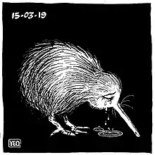 - ↑ Searle, Jamie (17 March 2019). "Shaun Yeo's cartoon of crying Kiwi touches the hearts of millions globally". Stuff. Retrieved 19 March 2019.