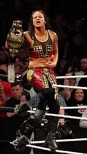 In October 2015, Baszler worked two events for Japanese promotion World Wonder Ring Stardom, during their American tour in Covina, California,[63] first teaming with Brittany Wonder and Datura in a loss to Oedo Tai (Act Yasukawa, Kris Wolf and Kyoko Kimura),[64] and unsuccessfully challenging Cheerleader Melissa for the GRPW Lady Luck Championship two days later.[65] She returned to the promotion in January 2017, this time touring Japan. She made her debut on January 3, teaming with Jungle Kyona and Mayu Iwatani to defeat Kagetsu, Kyoko Kimura and Sumie Sakai.[66] The following day, she teamed with Nixon Newell and Kay Lee Ray to defeat Iwatani, Kairi Hojo and Konami.[67] The following day, she faced Himomi Mimura and Viper in a triple threat match won by Viper.[68] On January 15, she took part in another triple threat match, this time defeating Momo Watanabe and Jungle Kyona.[69] On January 29, she teamed with Deonna Purrazzo and Christi Jaynes to defeat Kagetsu, Kris Wolf and Viper.[70] On February 23, Baszler unsuccessfully challenged Io Shirai for the World of Stardom Championship.[71]