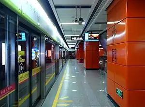 Shayuan Station (Chinese: 沙园站) is an interchange station of Guangzhou Metro Line 8 and Guangfo Line.[1] It is located at the underground of the junction of Rongjing Road[2] and Gongye Avenue North[3] in Haizhu District.[4][5] It was put into service on November 3, 2010. The Guangfo Line service has entered operations on December 28, 2015.[6]