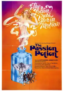 She'll Follow You Anywhere, released in the United States as Passion Potion, is a 1971 British comedy film directed by David C. Rea and starring Kenneth Cope, Keith Barron and Richard Vernon.[1] Two chemists working in a lab of a big corporation accidentally stumble across a love potion while working to create a new aftershave.