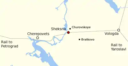 The Sheksna uprising (Russian: Пришексни́нское восста́ние, tr. Prisheksninskoye Vostaniye) was an anti-Bolshevik uprising in townships on the Sheksna River in the Vologda and Cherpovets provinces between 1–3 December 1918. The rebels seized the railway station Sheksna and broke railway communication on the Cherepovets-Vologda line, jeopardizing messages to Petrograd. The uprising was suppressed by Red Army troops arriving from Vologda and Cherpovets.