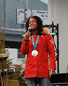 She won a silver medal in the Two-woman competition at the 2010 Winter Olympics with Helen Upperton. The gold medal was won by fellow Canadians Kaillie Humphries and Heather Moyse. It marked the first time of the 2010 Olympics that Canadians had won two medals in one event.[3]