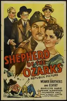 Shepherd of the Ozarks is a 1942 American comedy film directed by Frank McDonald and written by Dorrell McGowan and Stuart E. McGowan. The film stars the vaudeville comedy troupe the Weaver Brothers and Elviry, with Marilyn Hare, Frank Albertson and Thurston Hall. The film was released on March 26, 1942, by Republic Pictures.[1][2][3]