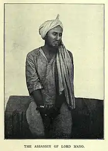 Sher Ali Afridi (died 11 March 1872) was an Indian soldier of Pashtun background, convicted of murder and imprisoned at the penal colony of Port Blair, Andaman Islands.[2][3] He is known for assassinating Lord Mayo, the Viceroy of India, on 8 February 1872. The British sources described him as a "fearless soldier and one who would have been selected for any service of danger".[4]