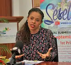 Sherin Francis at the launch of the Sesel sa! video competition in 2016