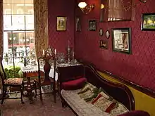 The Sherlock Holmes Museum is a privately run museum in London, England, dedicated to the famous fictional detective Sherlock Holmes. It is the world's first museum dedicated to the literary character Sherlock Holmes. It opened in 1990 and is situated on Baker Street, bearing the number 221B by permission of the City of Westminster,[1] although it lies between numbers 237 and 241,[2] near the north end of Baker Street in central London close to Regent's Park.[3][4]