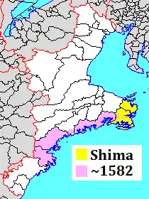 Shima Province (志摩国, Shima no kuni) was a province of Japan which consisted of a peninsula in the southeastern part of modern Mie Prefecture.[1] Its abbreviated name was Shishū (志州). Shima bordered on Ise Province to the west, and on Ise Bay on the north, east and south. It roughly coincides with the modern municipalities of Shima and Toba.