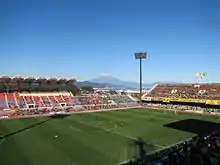 The most common reason for moving games is the restrictively low capacity of Nihondaira. This has often led the club to stage fixtures against neighbouring Júbilo Iwata and other high-profile clashes, at Shizuoka "Ecopa" Stadium.[25] This stadium was built in 2001 for the following year's World Cup and has a capacity of 51,349. Despite still being in Shizuoka Prefecture, Ecopa is over an hour's travel from Shimizu, deep within the Jubilo catchment area. For such a fiercely contested derby, much of the home advantage is lost; a factor which contributed in part to the staging of the 2007 derby at Nihondaira despite demand for tickets far outstripping supply. The decision paid off with a home victory. 2007 saw all home games staged at Nihondaira for the first time since 1999. This was repeated in 2008, although between 2009 and 2015 Ecopa was used for at least one home league game.[26] S-Pulse have chosen not to use Ecopa since 2015, playing all home league games at Nihondaira.